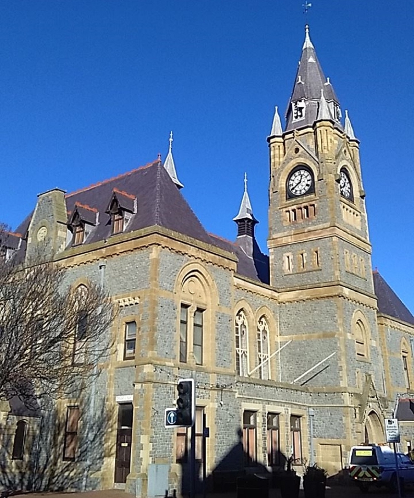 Rhyl Town Hall is a municipal structure in Wellington Road in Rhyl, Denbighshire, Wales. The town hall, which was the headquarters of Rhyl Urban District Council, is a Grade II listed building which host various events including live music.